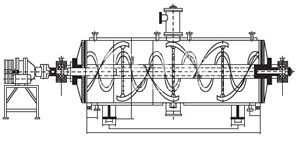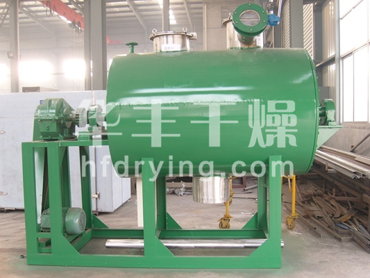 本机是一种新颖卧式间歇式真空干燥设备,湿物料经传导蒸发,带有刮板搅拌器不断清除热面上的物料,并在容器内推移形成循环流,水份蒸发后由真空泵抽出。